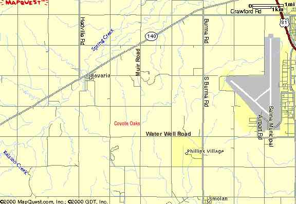 Turn west (away from town) on Crawford St. and travel west 3+ miles. Turn left on K- 140 and go 1½ miles to Muir Rd. (You will see “Ted Augustine’s Furniture” immediately ahead on the right.) Turn left on Muir Rd. and drive 2 ¾ miles up into the hills. You will see our sign at the front gate. |